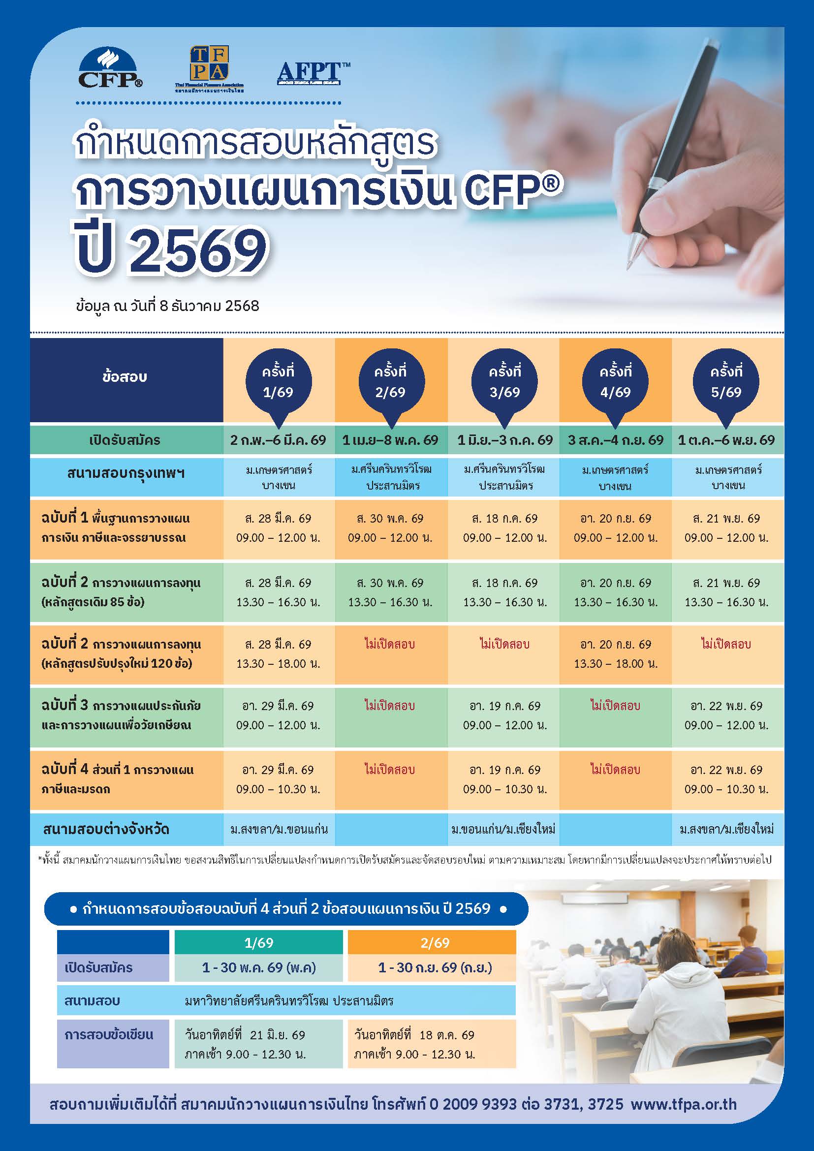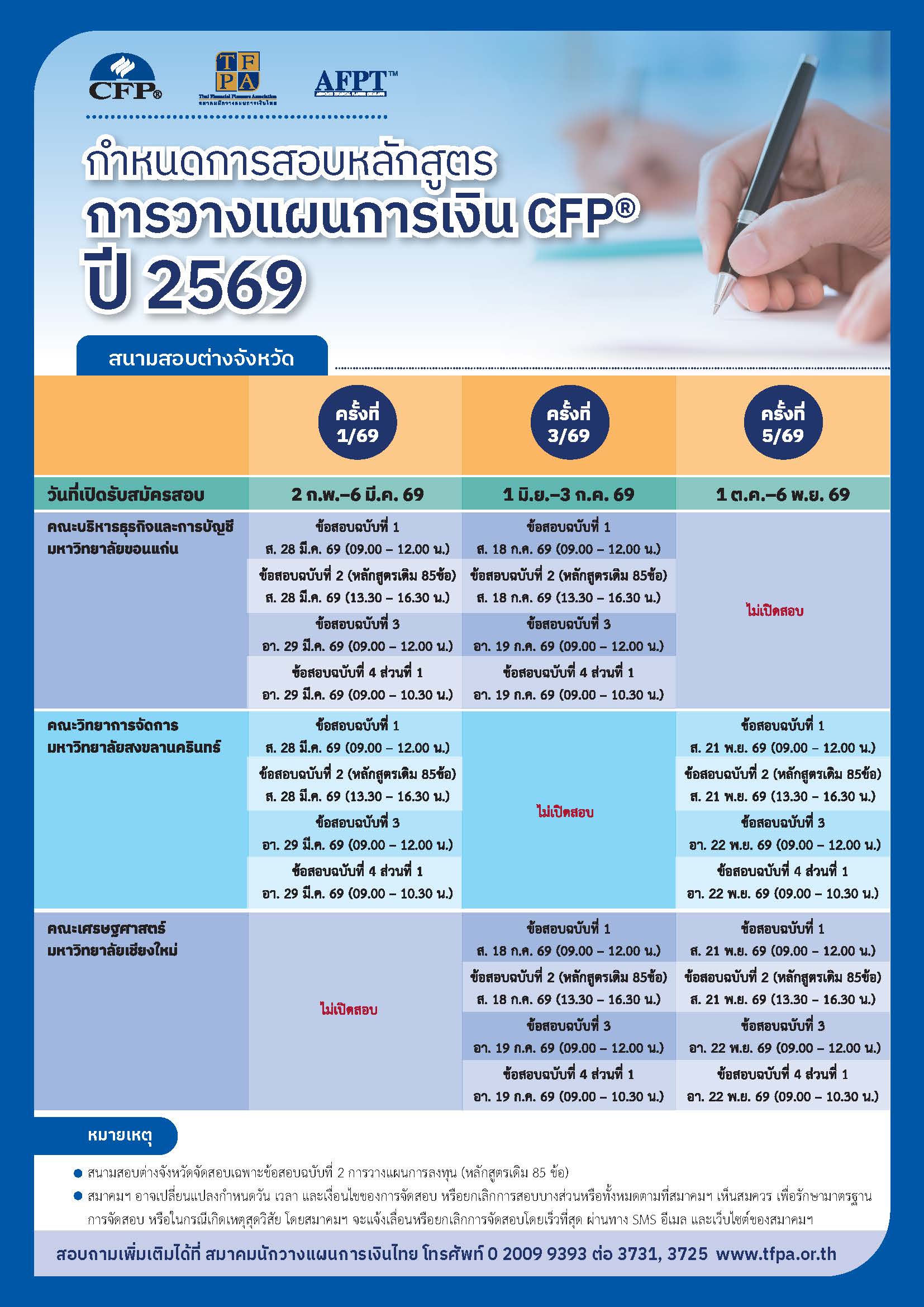 - ตารางสอบหลักสูตรการวางแผนการเงิน CFP® ปี 2569